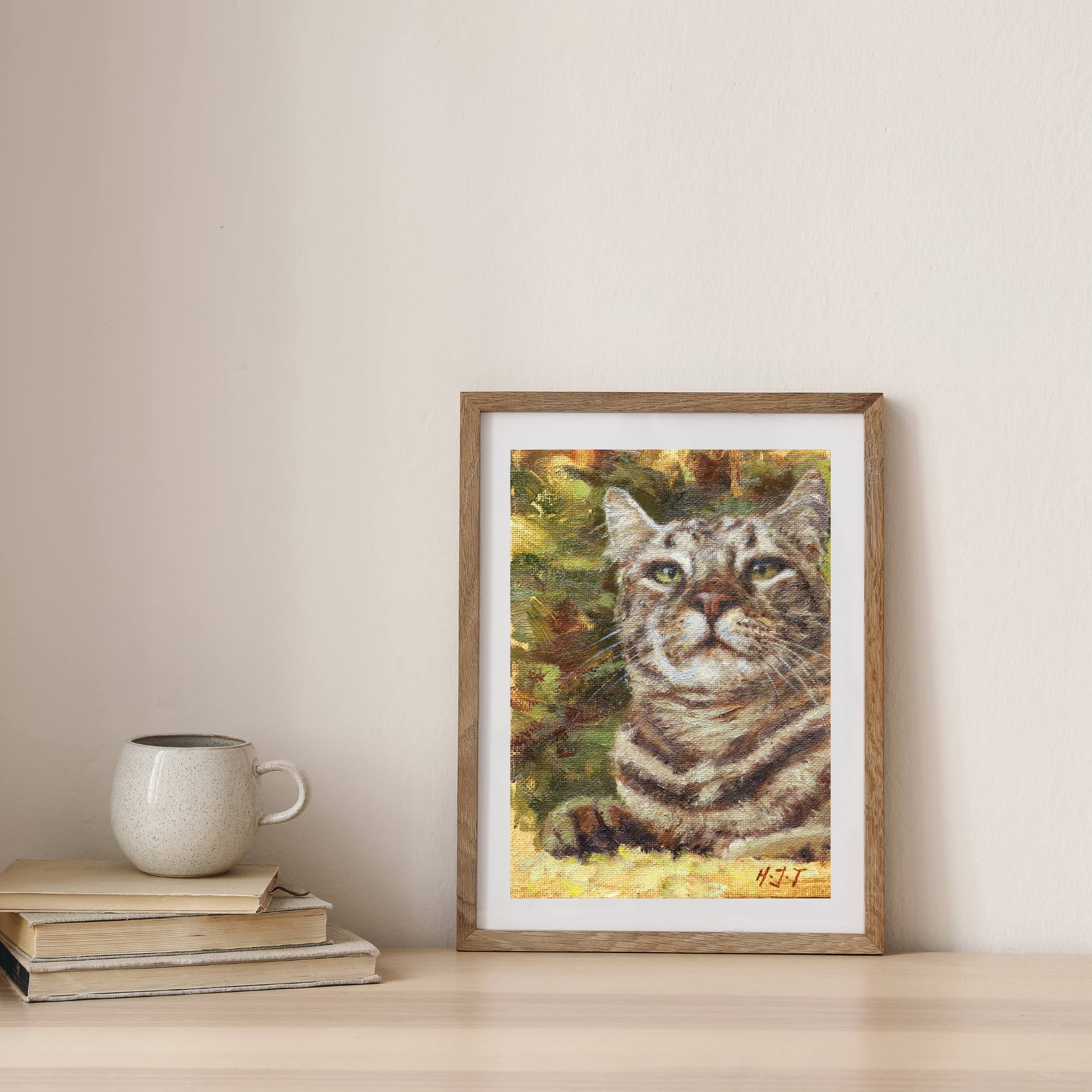 Meet The Boss Tabby Cat — where charisma meets charm in every gaze. This artwork captures the confident spirit and unique character of a cat through HJT’s signature realistic yet painterly style. If you have a Tabby kitty, this is for you. Perfect for adding a playful touch to your space, it brings a mix of bold personality and artistic flair to any room.
